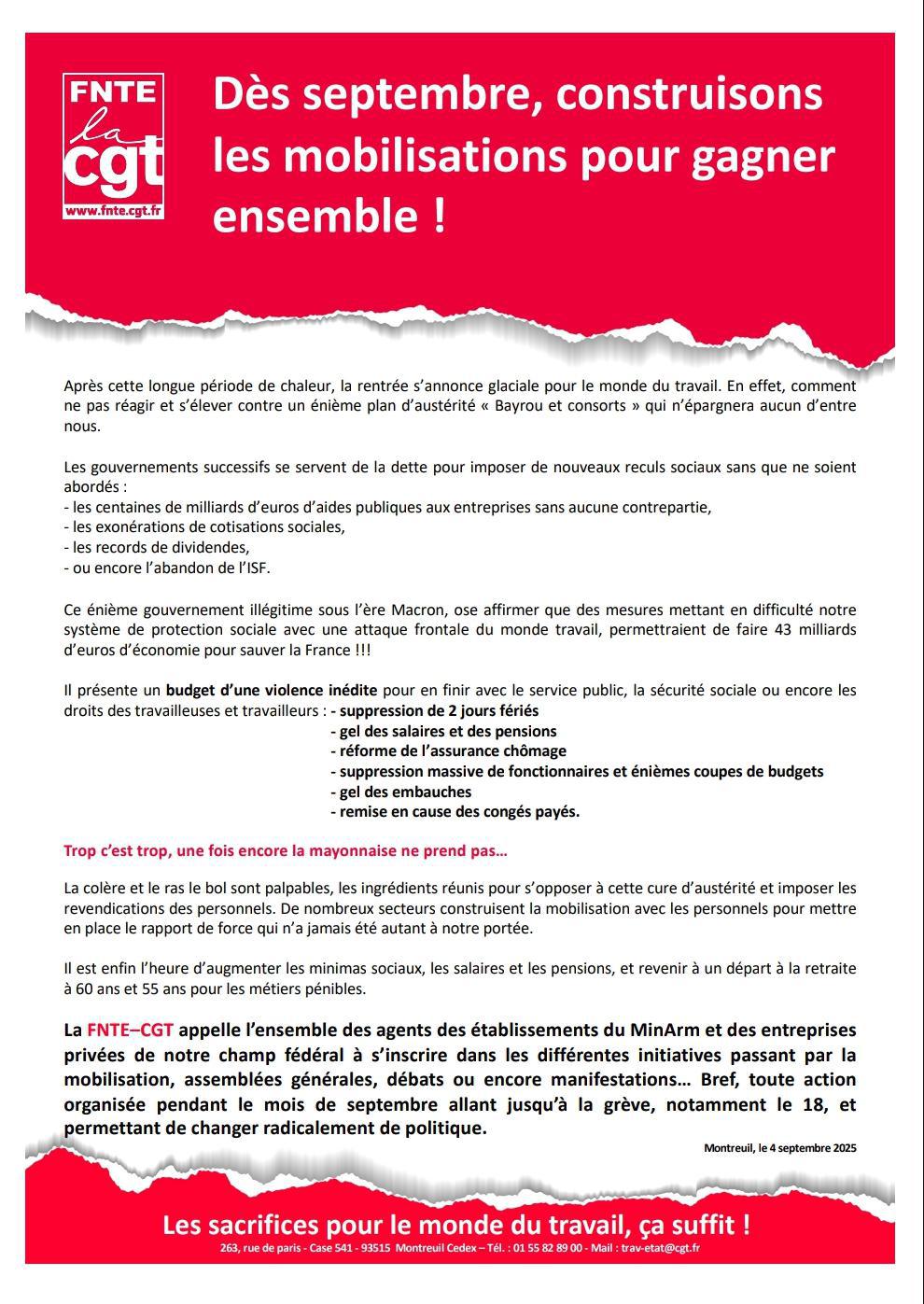 appel mobilisations Septembre