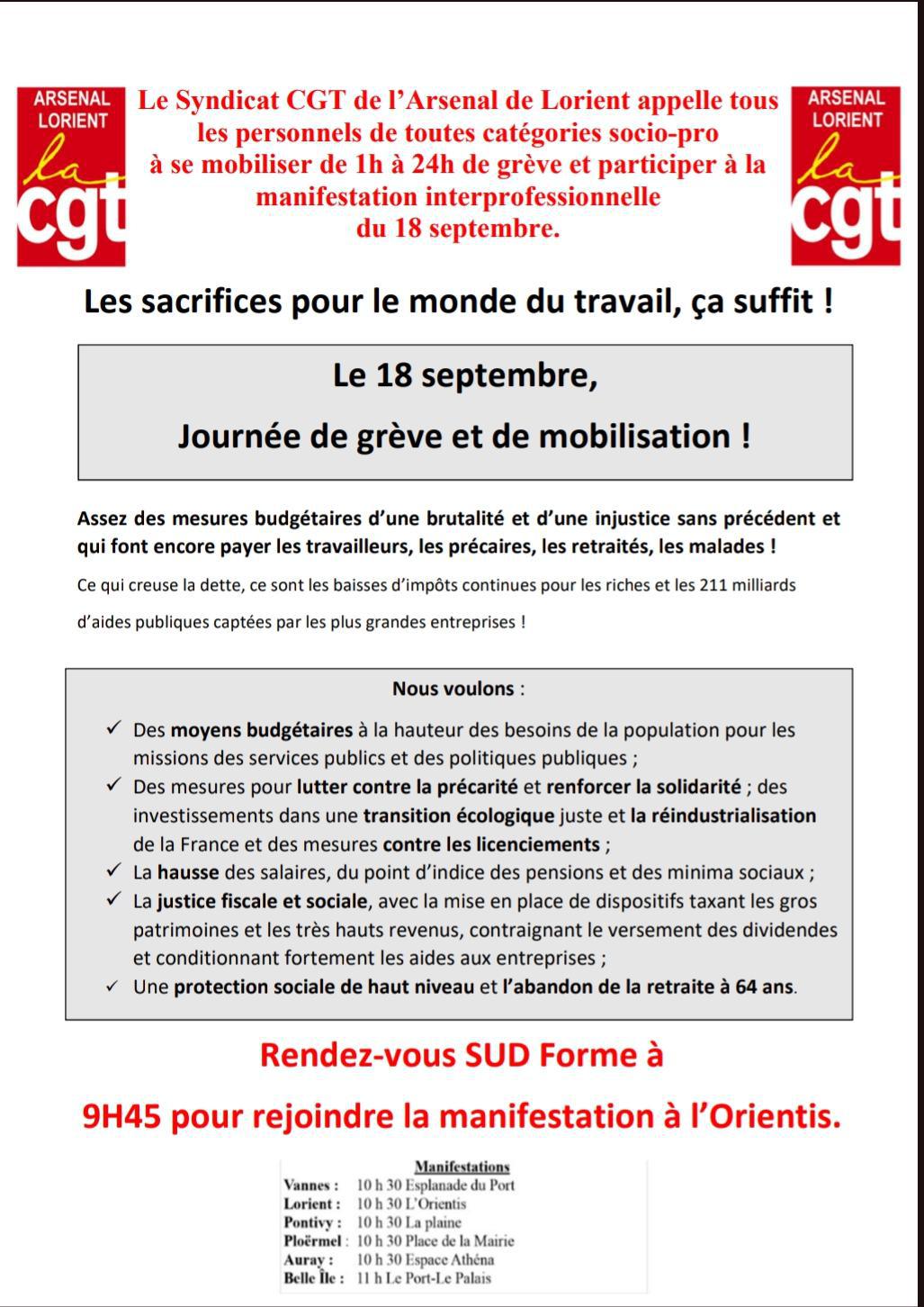 📢Le 18 septembre journée de grève et de mobilisation !📢